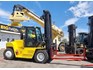 Leading brand 8763 hours rated 11,720kg at 600mm & 8,160kg at 1220mm load centres easy road transport with 4.650m lift height, 4050mm lowered height mast. Has hydraulic fork positioning and side shift of 2.440m long fork. Enclosed lockable cab with a/c heater demister. Cummins engine and auto shift xmsn.
